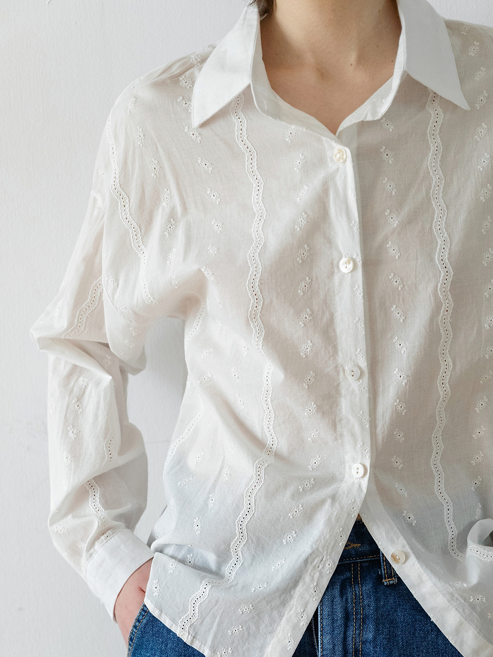 Punching Eyelet Embroidered Shirt_EESSH09_Ivory