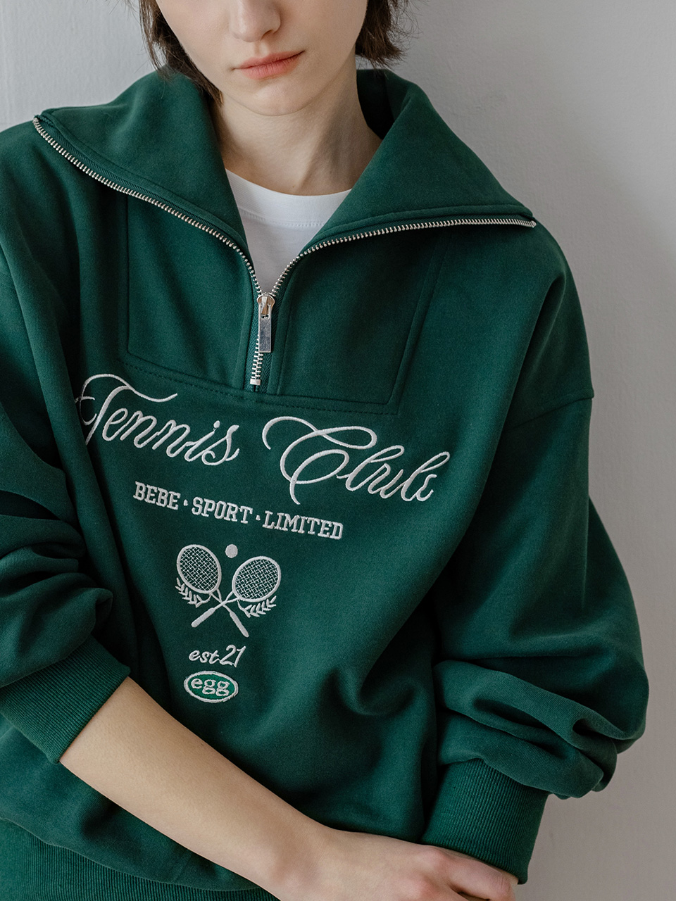 Club Embroidery Half Zip-Up Sweatshirt_EESTS18_Green