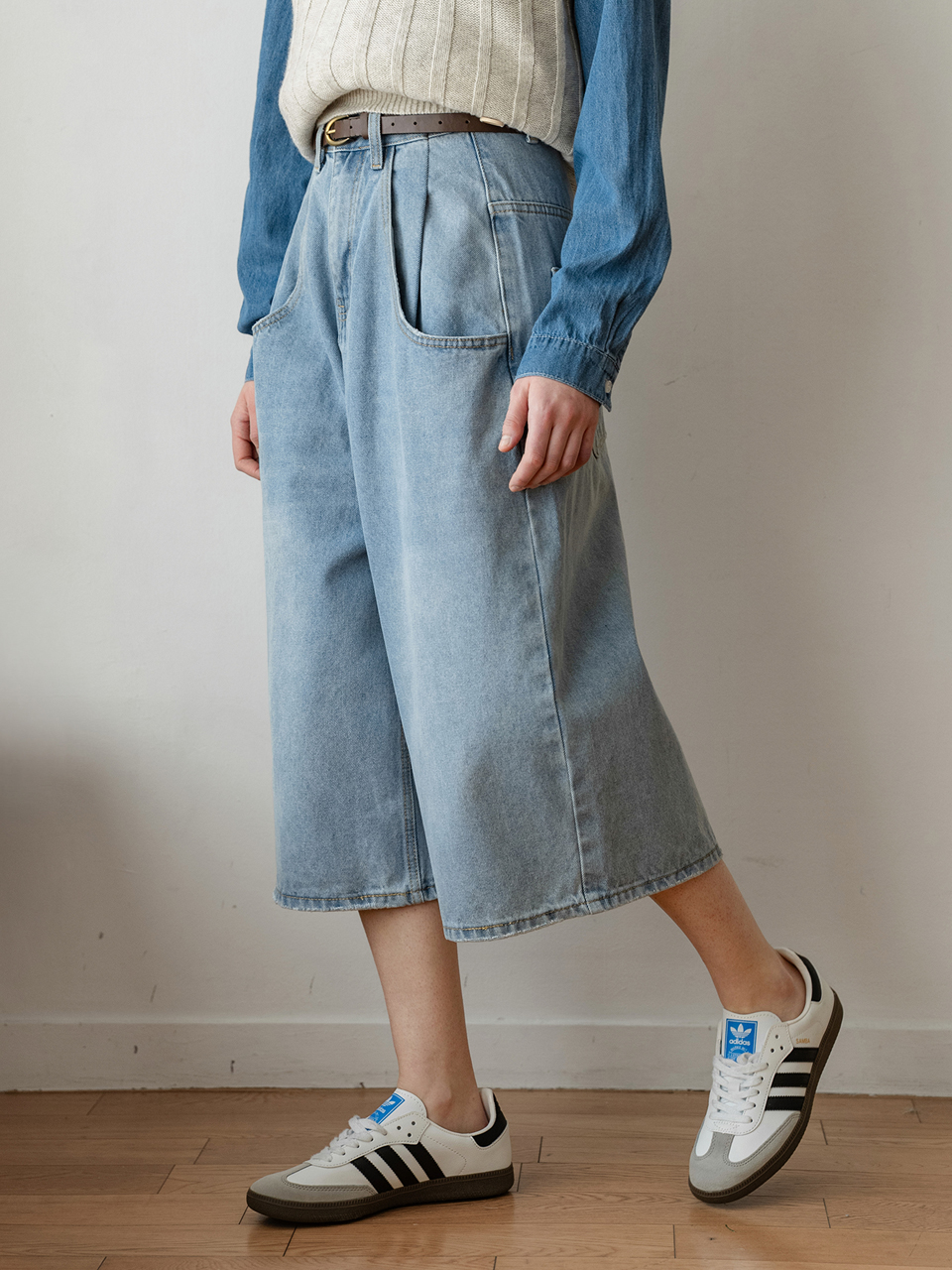 8Crop Pintuck Bermuda Denim Pants_EESDP23_Light Blue