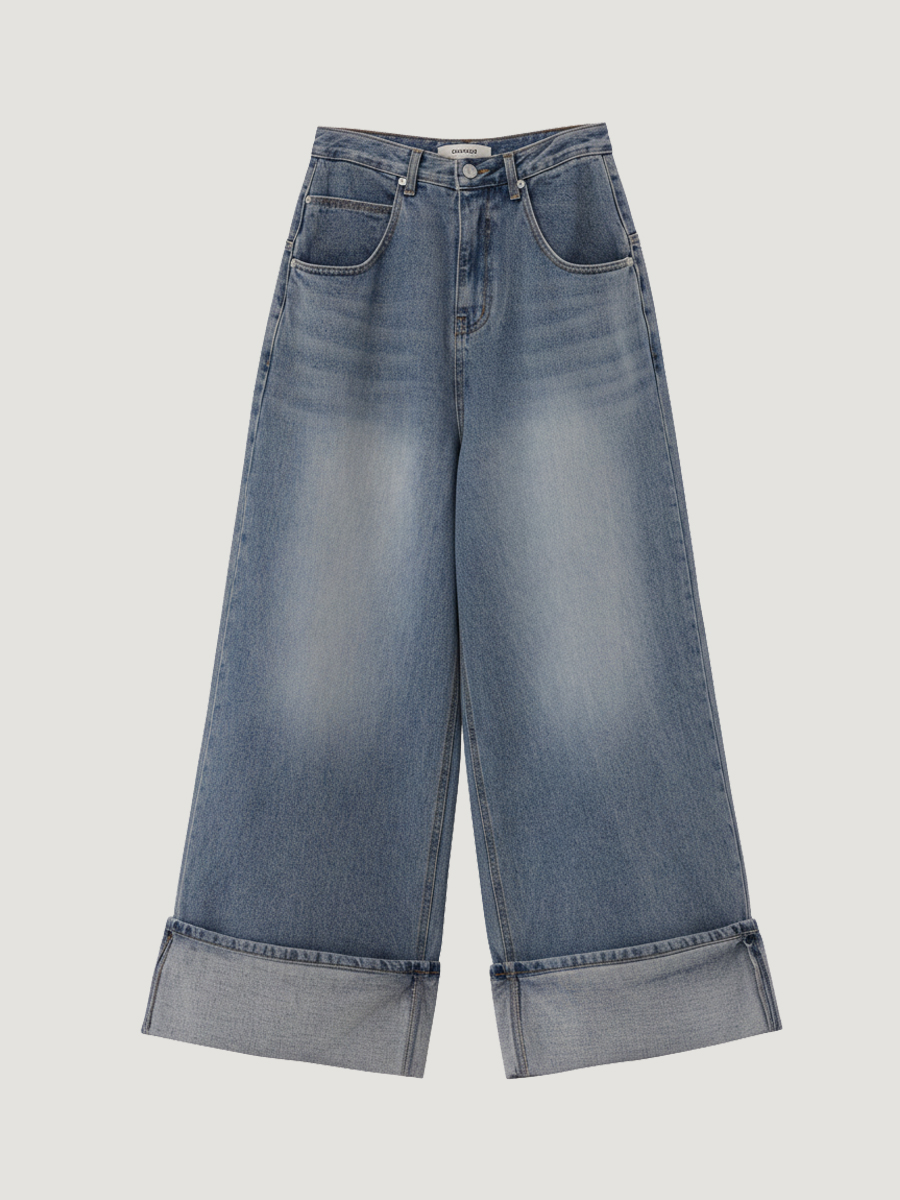 Nug Non-Fade Turn-up Wide Denim Pants_EFSDP197